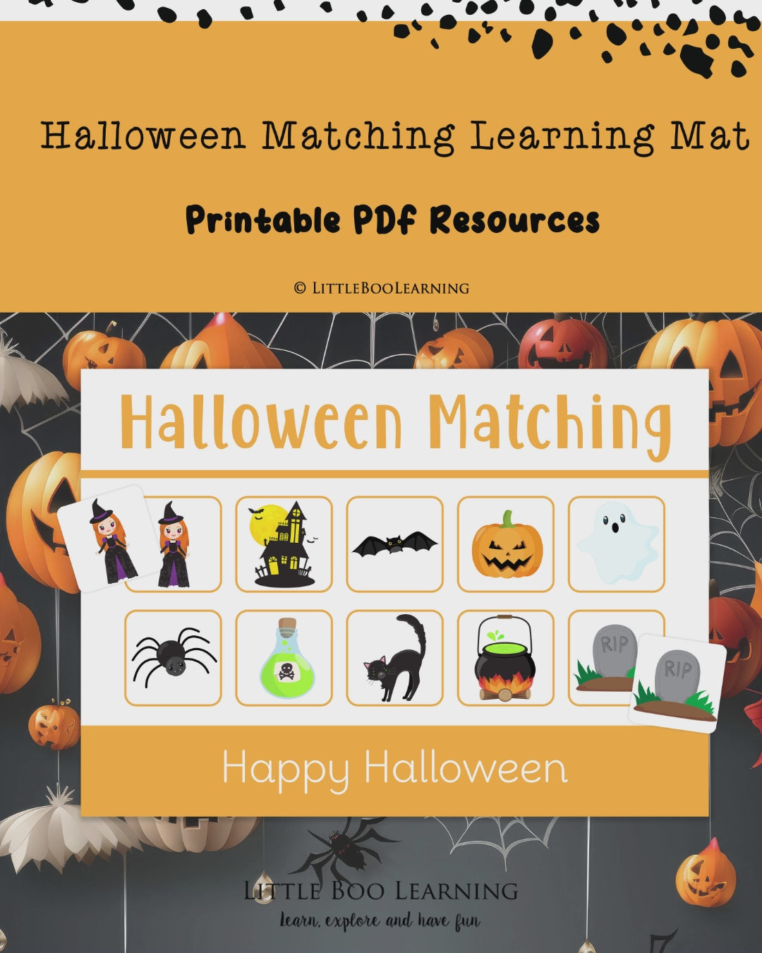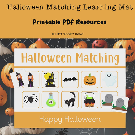 Make learning spooktacularly fun this Halloween with our Printable Halloween Matching Learning Mat!