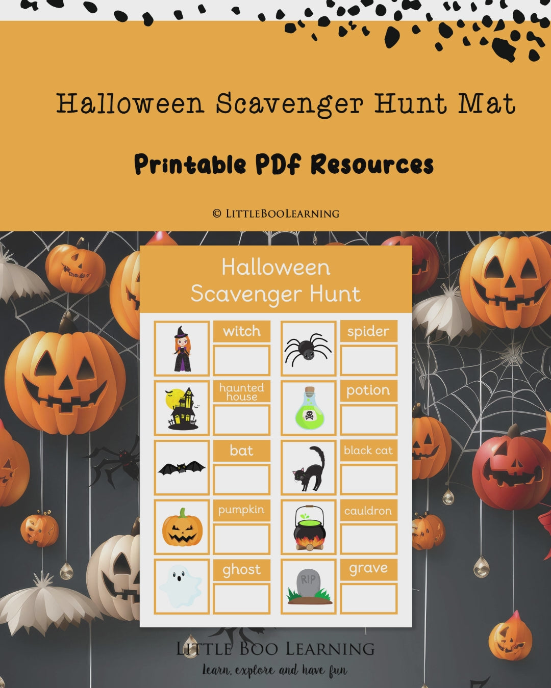 Turn your Halloween adventures into a fun and educational scavenger hunt with this Printable Halloween Scavenger Mat!